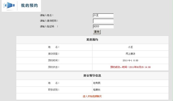 第二步就是进行视频通话,预约人使用名字和查询密码登录