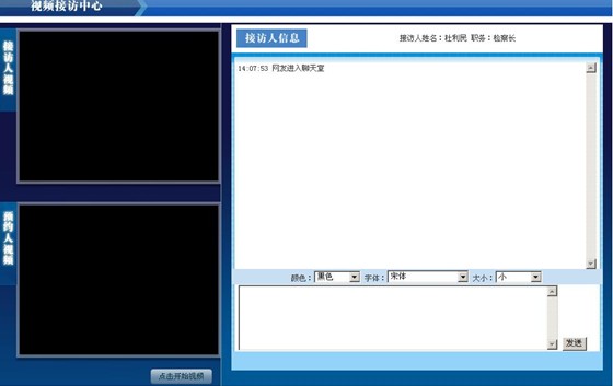 视频接访是正义网独立开发的程序,可以实现双方视频通话及文字交流,并为管理员设置了多项配置,可以刻录视频内容,提高视频接访的管理效果。
