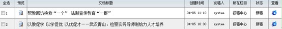 4.通讯员投稿成功后,管理到本院的TRS后台编辑稿件,通讯员的姓名在后台统一显示为“SYSTEM”,如下: