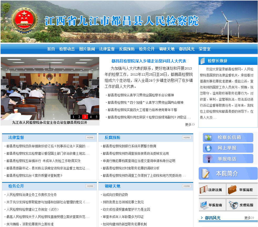 江西省都昌县人民检察院门户网站已于2013年12月25日成功开通上线(http://www.jxduchang.jcy.gov.cn)。