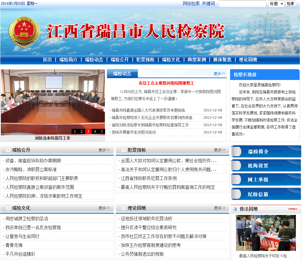 江西省瑞昌市人民检察院门户网站已于2013年12月25日开通上线(http://www.jxruichang.jcy.gov.cn/)