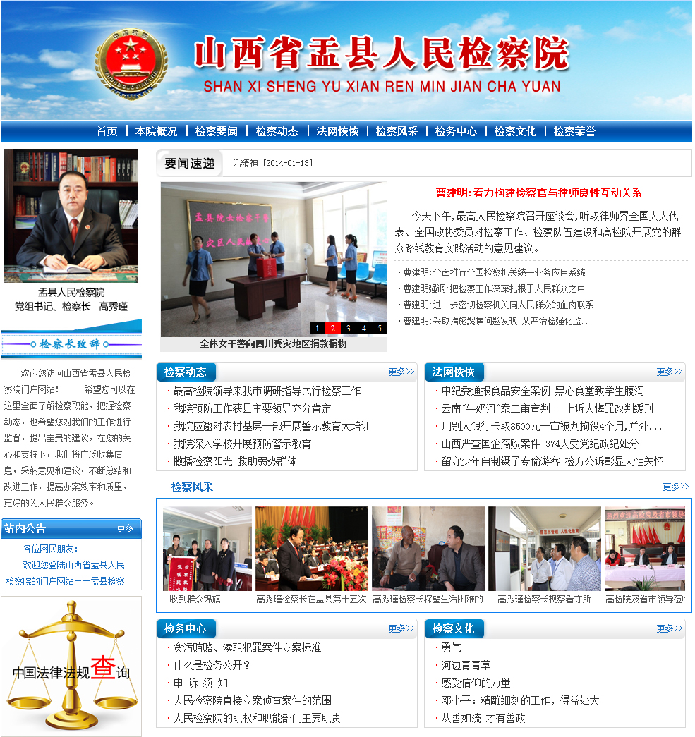 在这里您可以全面了解检察职能,把握检察动态,对盂县检察院的工作进行监督,提出宝贵的建议,相信在您的关心和支持下,山西省盂县检察院将广泛收集信息,采纳意见和建议,不断总结和改进工作,提高办案效率和质量,更好的为人民群众服务。